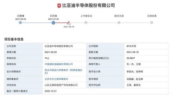◎比亚迪半导体上市突遭中止 官方:会尽快推进复核