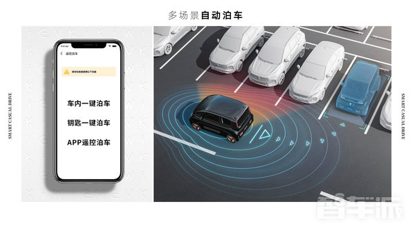 智能方面,KiWi EV支持多场景自动泊车,包括车内一键泊车、钥匙一键泊车以及APP遥控泊车,并支持APP智能远程控制和ACC-全速域自适应巡航。车内采用四座布局,副驾驶放下后排乘客即可进出,主座驾支持6向调节。