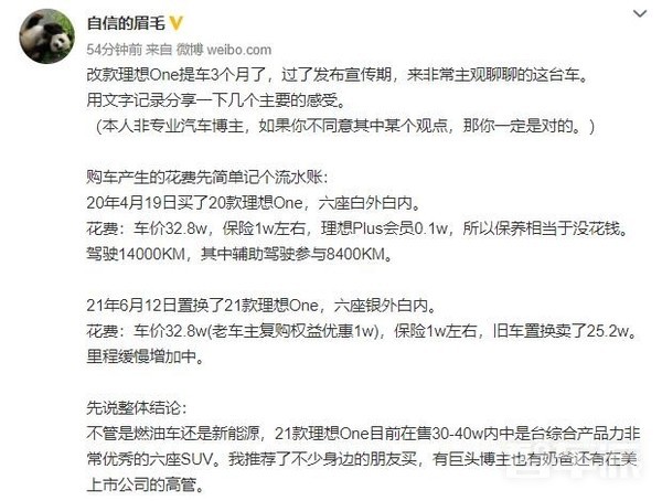 更加舒适!沈义人发长文谈2021款理想ONE使用体验