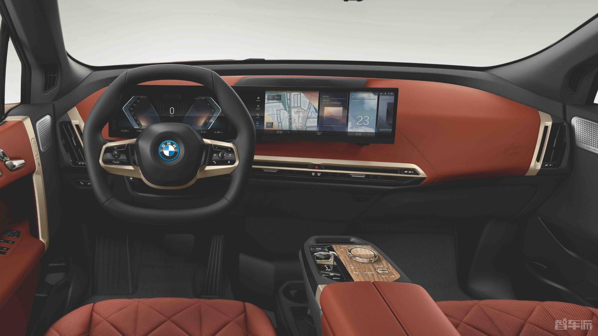 而在内饰部分,该车整体保持了简洁的风格,最显眼的可能要数驾驶位前面的由12.3英寸液晶仪表+14.9英寸中控屏组成的双联屏。在强调科技感的同时,宝马iX也没有丢失豪华感。该车中控台采用皮质包裹,电子挡把则采用水晶材质,精致感十足。
