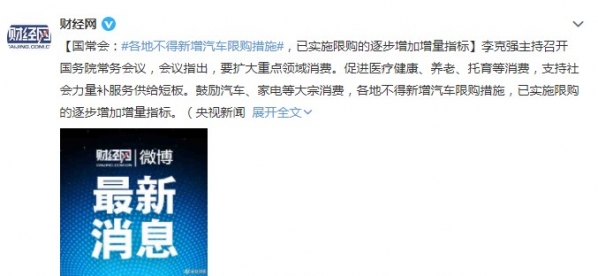 汽车限购?新政策出炉:各地不得新增汽车限购措施