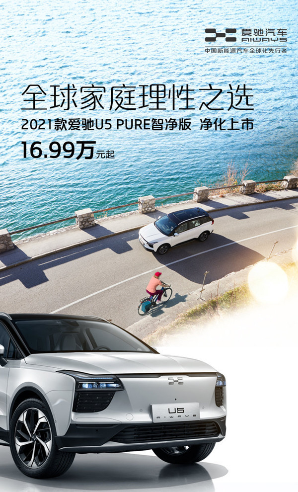 16.99万起!爱驰U5 PURE智净版净化上市 可自由选配
