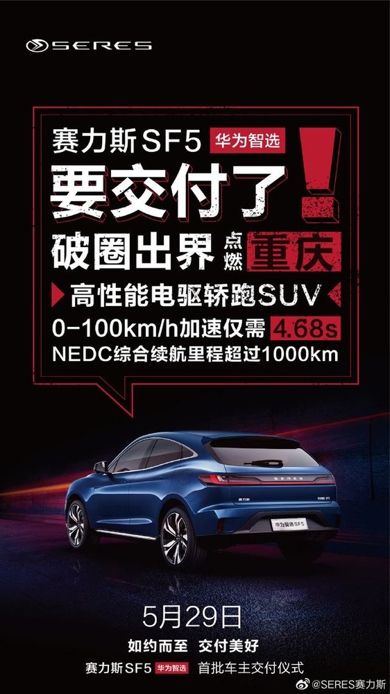 提车的要注意了!赛力斯华为智选SF5将于29日交付