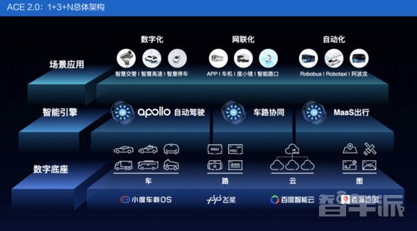 此外,百度Apollo还发布了“ACE智能网联解决方案”。基于ACE智能交通引擎2.0,ACE智能网联解决方案同样采用“1+3+N”架构,在1大数字底座和3大智能引擎的基础上,在数据丰富性、算法提升性以及应用落地性等方面,均较ACE1.0有了极大提升。
