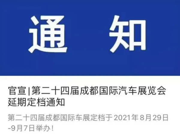 官宣!成都车展推迟两天 将于8月29日-9月2日举行