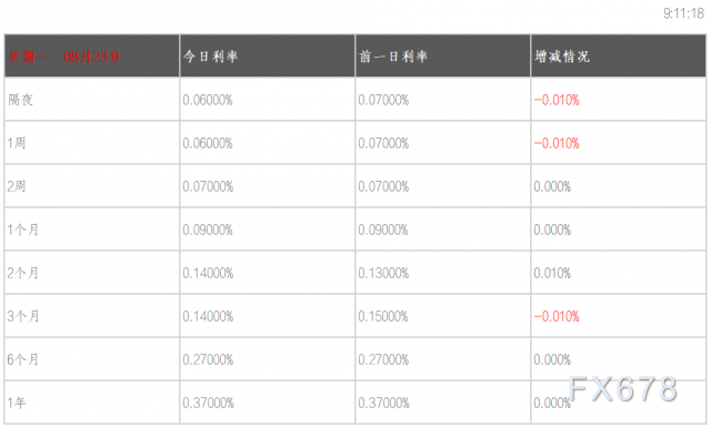08月23日香港银行间同业拆借利率港币HIBOR