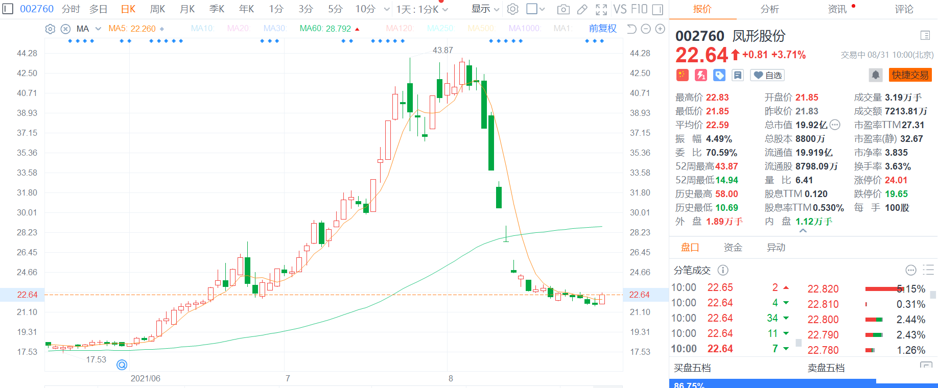 凤形股份(002760.SZ)涨约4%,报22.64元,总市值20亿元。
