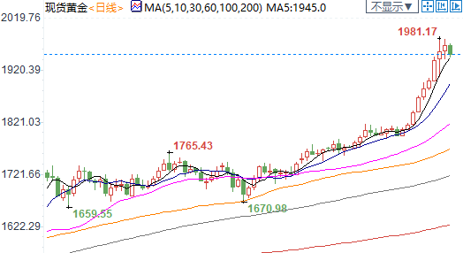 在此状况下,唯一可能阻止金价持续上行的消息就是新冠病毒疫苗超预期取得突破性进展,令疫情快速得到控制,否则,在2000美元上方,现货金价也仍有大把的进一步向上突破空间