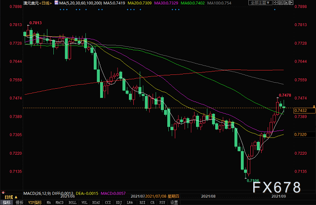 北京时间9月7日15:43,澳元兑美元报0.7432/34
