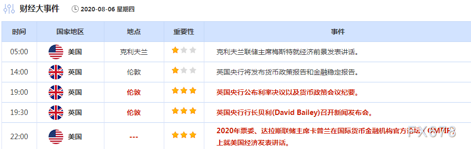 欧洲时段,将迎来德国、法国和意大利7月份的贸易数据,由于欧洲新冠疫情已经初步得到控制,市场预计贸易数据将好于6月份的表现,有望给欧元和欧洲股市提供支撑,对避险资产可能会有一些短线利空影响。