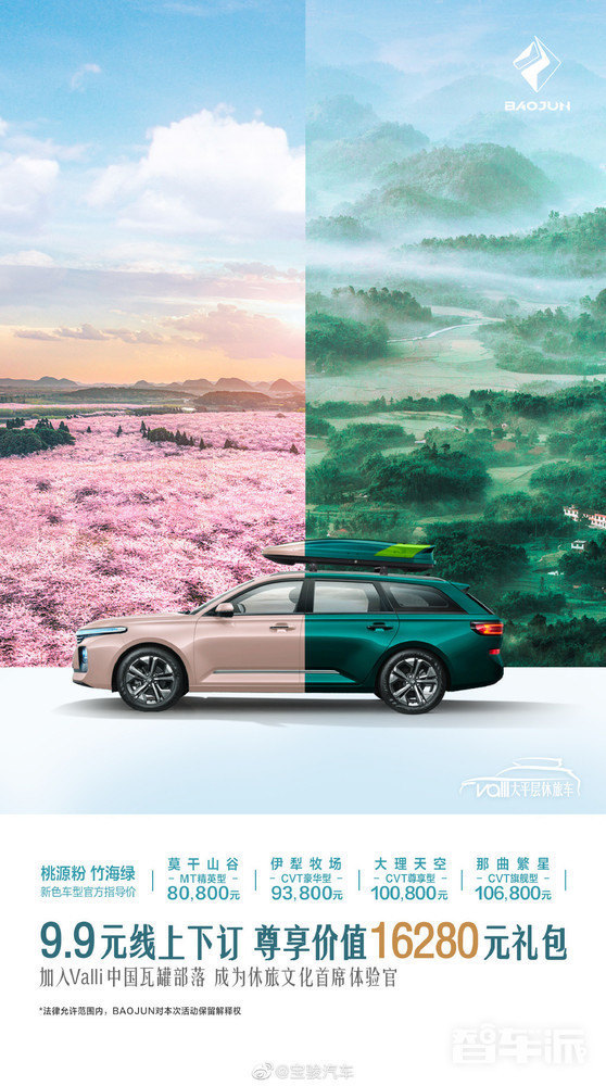 9月9日,宝骏Valli上新了两个新配色——“桃源粉”和“竹海绿”。同时,宝骏RC-5全系也上线七个向往新色,分别是苏杭青、洱海蓝、婺源黄、雪乡白、古城灰、桃源粉以及竹海绿。其中,宝骏Valli新色“桃源粉”、“竹海绿”与手动挡MT车型“莫干山谷”今日正式开启预订,宝骏RC-5也同步开始下订。