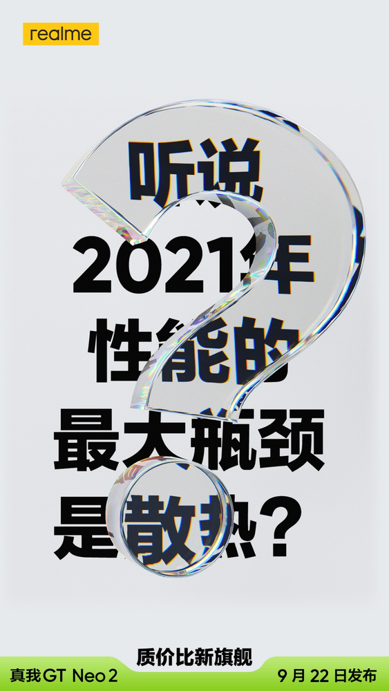 另外,9月15日下午,realme副总裁、中国区总裁、全球营销总裁徐起发布“质价比”海报,“听说2021年性能的最大瓶颈是散热?”可见真我GT Neo2这次性能升级的主攻方向其中之一就是散热。在真我GT大师探索版上,我们就已经见识了realme对骁龙870处理器的出色调校。此次的新品预计还将更进一步,从而用强大的散热保证骁龙870处理器的持久高能输出,这让我们对即将发布的真我GT Neo2也充满了期待。