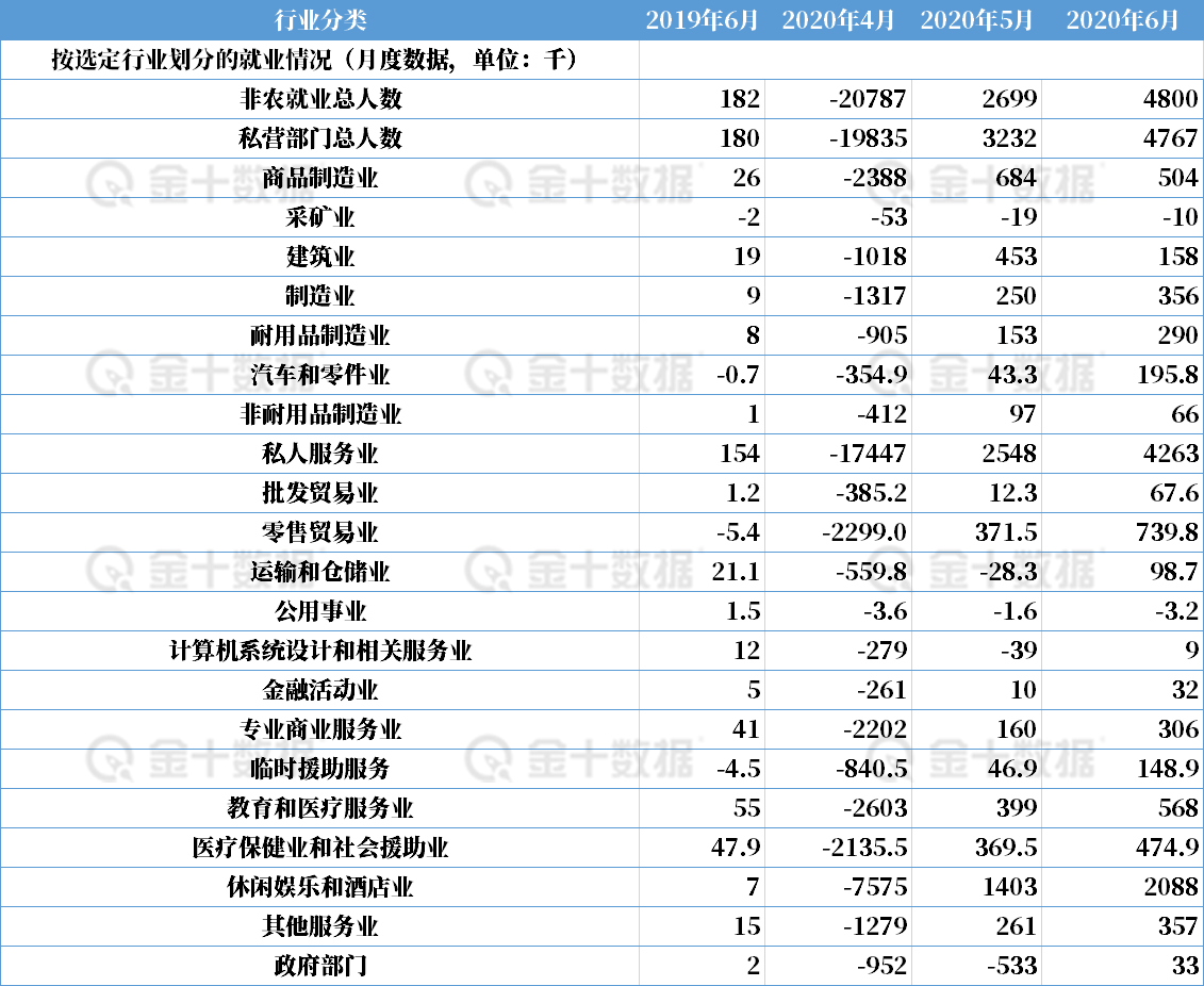 到了5、6月份,美国增加了749.9万个就业岗位。其中61%是来自零售业和休闲/酒店业。