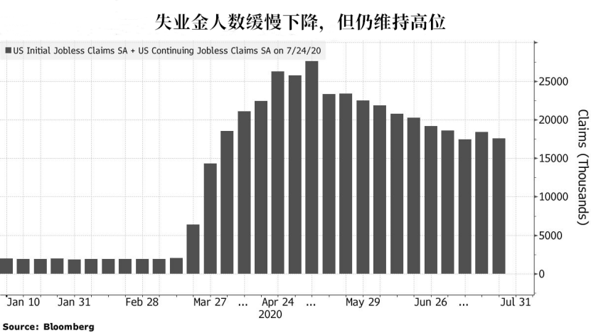 2.新一轮刺激难以达成共识,“行政令”可能无法落实第三轮刺激法案已经结束了一个星期,如今,第四轮纾困法案的共识仍存变数。美国总统特朗普8日签署若干关于援助期限延期的行政令,其中包括延长已过期的额外失业救济金。行政令将为失业的美国人提供每周400美元的额外失业救济;此外,州政府需承担其中四分之一的费用,即100美元。然而,这一举动可能违宪。美国众议院议长佩洛西表示,特朗普的行政令,只是“幻想”,而不是持久的解决方案。另外,由于州政府的收入已严重不足,特朗普的行政令能否落实也是一个问题。根据规定,特朗普只能使用此前刺激法案剩余的部分以支付延长的失业金,这将意味着失业金可能将降至每周300美元,这可能对消费者支出和违约情况等产生巨大影响。目前距离大选还有不到三个月的时间,这一行政令增加了失业问题的复杂性。美元也会因此而承压。3.第一轮刺激法案带来了效果,但......第一轮刺激计划的影响虽然很难评估,但有两个指标说明了其发挥了重要作用。比如,从密歇根消费者信心指数来看,虽然在新冠疫情的打击下该指数有所下降,但仍远高于次贷危机期间的低点,这说明有可能是迅速推出的刺激法案确实稳住了消费者的信心。