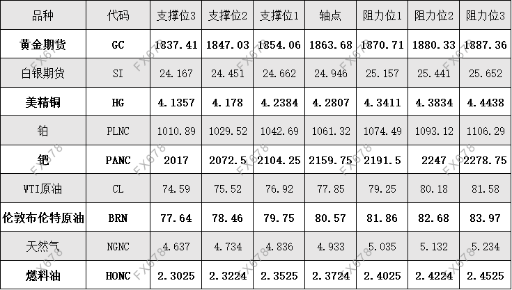 11月19日外汇、黄金、原油等期货阻力支撑位