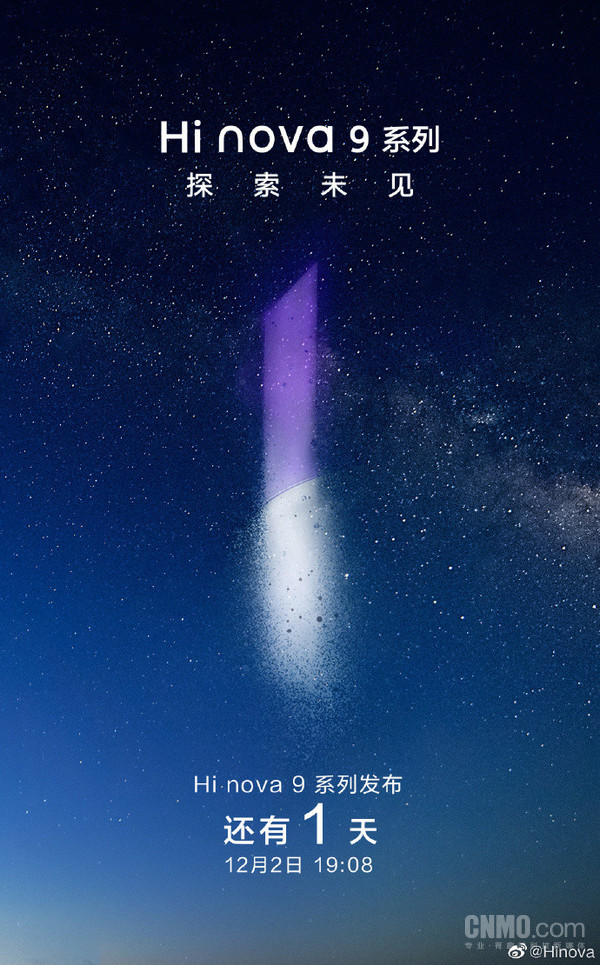Hi nova9系列发布会将于12月2日19:08举行,现在距离该系列新机亮相也只有1天时间了。