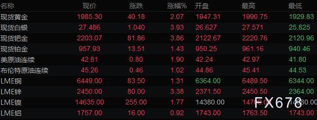 8月18日财经早餐:美元跌至10日低点,黄金大涨2%一度升上1990关口,油价收于逾5个月高位