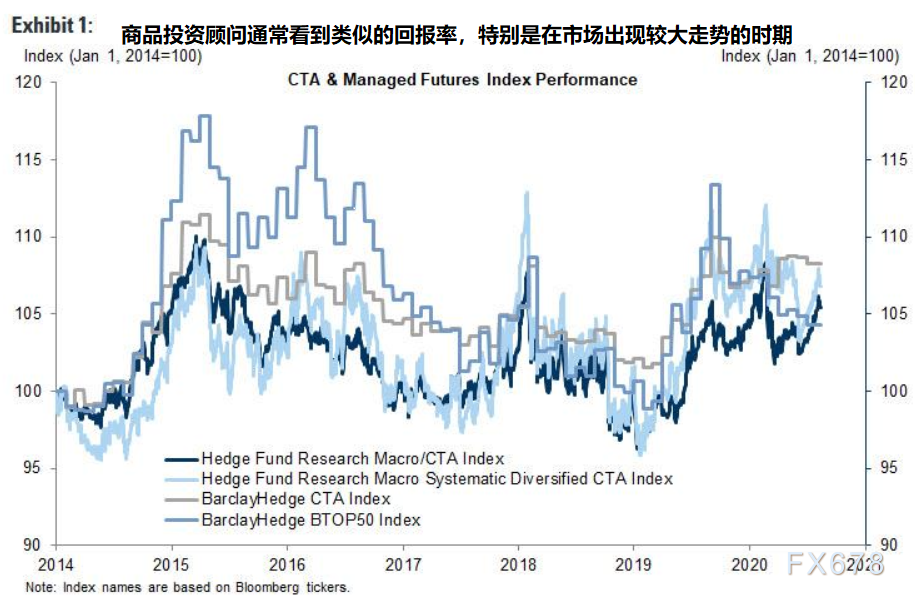③ 尽管不同的交易方法,商品交易顾问往往看到相似的回报,特别是较大的市场波动时期。但事实上,基金之间的收益差异大多来自资产构成、风险水平和头寸规模等因素,而不是具体的交易信号。