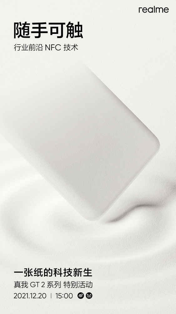 realme真我GT2系列将采用行业前沿NFC技术 随手可触