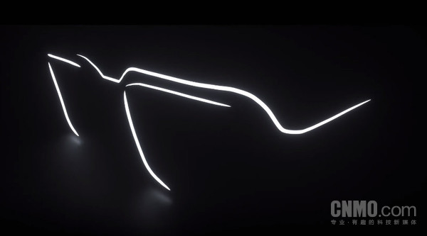 视频中,官方用光线勾勒出了一些字母和产品的轮廓图。下面这个图较为隐晦,但很有可能是这次的重头戏——华为P50 Pocket,其神秘的花纹非常吸睛。