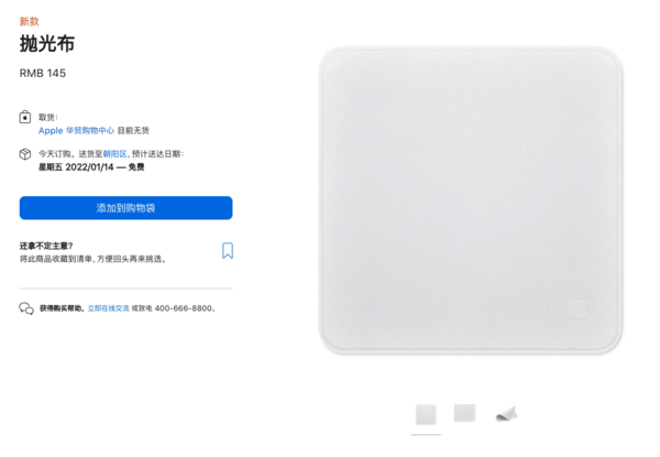 虽说很多网友认为购买一块145元的抛光布“不可思议”,但这丝毫没有影响到这款产品的热销。抛光布曾在发售首日迅速售罄,随后发货日期推迟到2022年1月。直到近期,这款抛光布终于得到补货,现在下单只需等待两天即可收货。