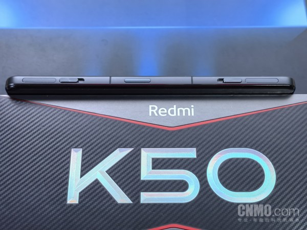 在K50电竞版的侧面,则是布置了很多键位,有按压的也有拨动的。最右侧的是磁动力弹出式肩键2.0,默认情况下是不弹出的。当拨动开关,肩键就会弹出,拨一侧,弹一侧,同时拨,则可以直接进入游戏空间。在这代产品上,Redmi将拨动开关的磁铁数量增加到了8颗,稳定性更强,没事干的时候,来回拨动,也会成为新的解压神器。