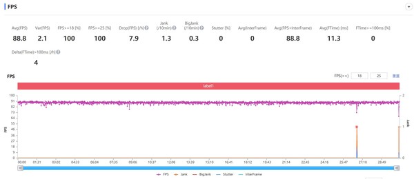《和平精英》默认画质下并开启90帧后,K50电竞版的平均帧率达到了88.8帧,游戏体验非常流畅。在各种复杂的场景中,包括野外、室内、跑图开车等,都没有出现卡顿的现象。也正是《和平精英》这类射击游戏当中,K50电竞版的肩键可以得到更好地发挥,开镜到射击动作一气呵成,无异于手游玩家的另一大乐趣。在这里也悄悄地告诉大家,K50电竞版全球首发了CyberEngine超宽频X轴马达1016,是安卓最大尺寸的X轴马达,拥有更强的振动量和更丰富的振动效果,实属是一大加分项,高品质振感可以让你在驾车时感受到发动机的隆隆轰鸣,行驶中遇到石头甚至也会有感觉,非常沉浸。