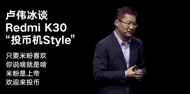 此外,当时Redmi K30因为背面酷似“投币机Style”的摄像机设计而被网友铺天盖地调侃,卢伟冰回应称:“只要米粉喜欢,你说啥是啥。米粉是上帝,欢迎来投币”。