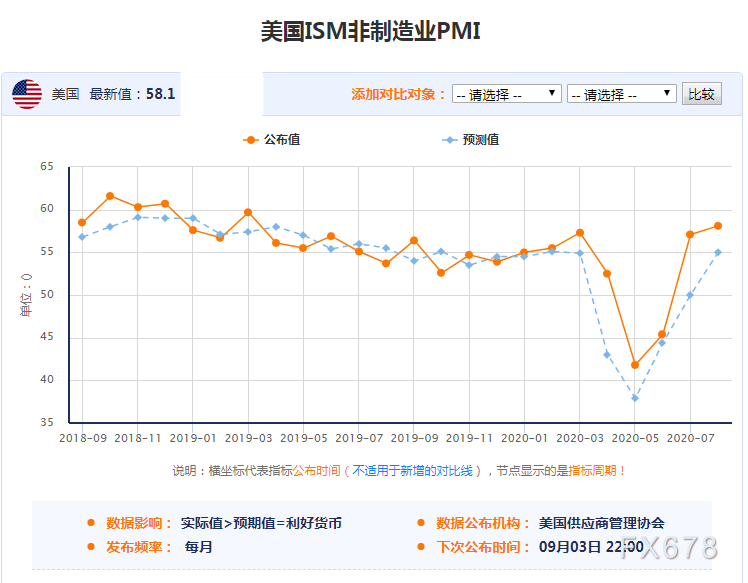 8月5日美国供应管理学会(ISM)数据显示,美国7月服务业指数从6月的57.1升至58.1,
