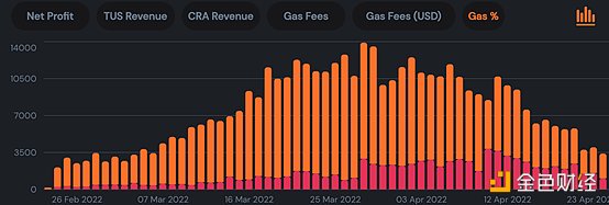 虽然这些机器人只占用户总数的25%以上,但他们却贡献了Crabada总费用的55%,4月20日,Avalanche网络总收入的30%以上可能都来自这些机器人,年化费用约为1.2亿美元。