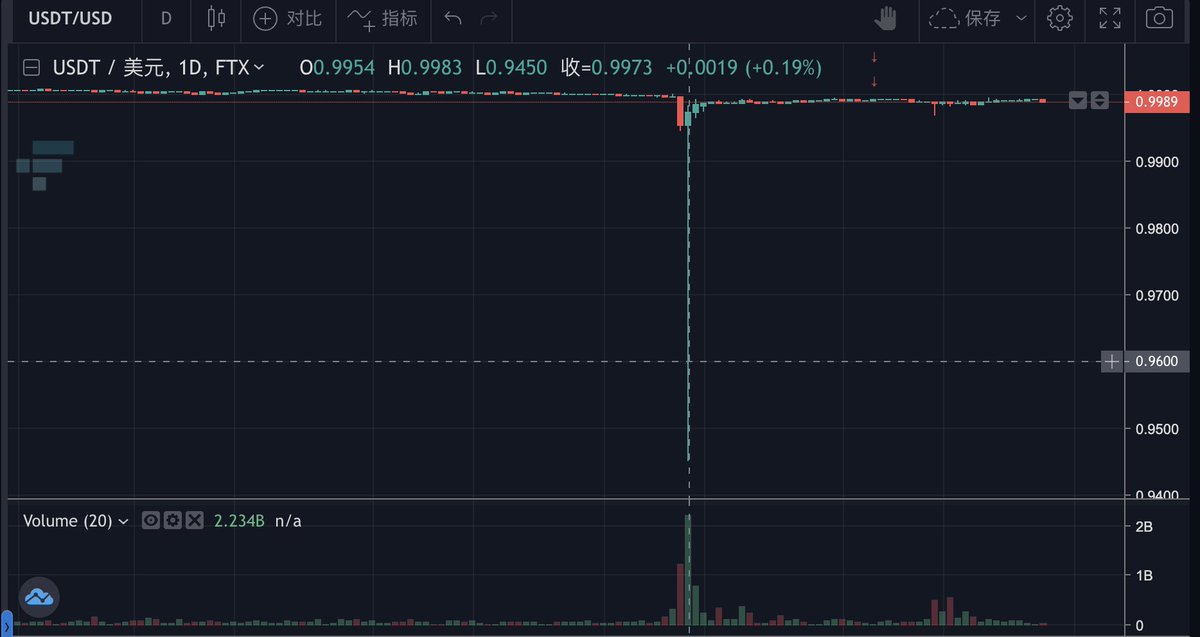 由于 Tether 的 redeem 流程一直很顺畅,从发行以来没关过,这种脱钩通常都是很短暂的,即便是 5/12 这种 UST 崩溃的极度恐慌时刻,都只让 USDT 短暂脱锚 0.95,很快就反弹。