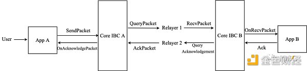 类比于互联网通信协议TCP/IP的层级体系,IBC可分解为传输层和应用层。传输层提供必要的基础设施以在链间建立安全连接和验证数据包;应用层准确定义了这些数据包应该如何被发送方打包、以及如何被接收方解释。