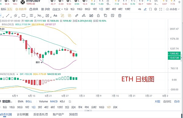 ETH日线级别,从指标上看K线已经靠近了BOLL中轨。