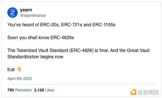 ERC-4626由一群著名的EVM开发者开创,是一种新的代币化金库标准。正如ERC-20和ERC-721等标准允许在以太坊上轻松创建同质化和非同质化的资产并集成到应用程序中一样,ERC-4626承诺通过提供一个模板,任何开发者都可以轻松创建他们自己的金库,为DeFi金库做同样的事情。