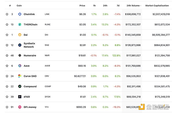 过去24小时去中心化交易所的交易量 数据来源:coingecko