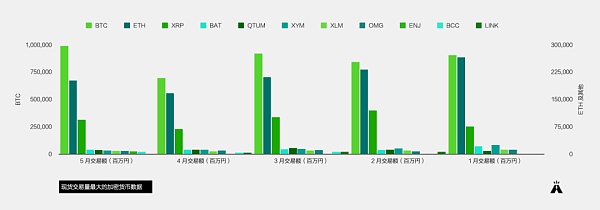 现货交易量最大的加密货币数据(2022 年 1 月-5 月)