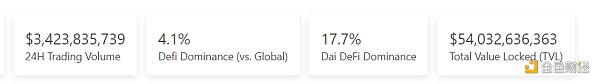 2.过去24小时去中心化交易所的交易量:34.23亿美元