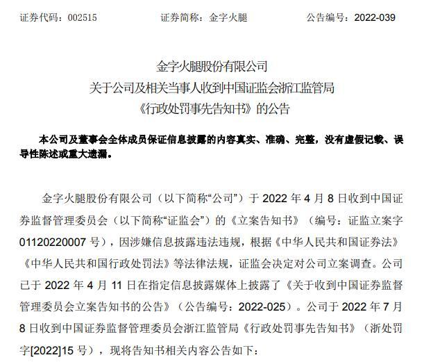 经查明,金字火腿涉嫌违法的事实包括未及时披露期货交易重大损失;未及时披露收到大额赔偿款。
