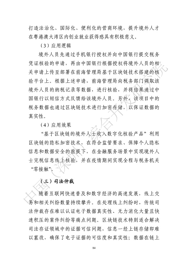 作为一大亮点,报告引用了大量基于FISCO BCOS,并在粤港澳大湾区落地的应用案例:在数字经济发展方面,“粤澳跨境数据验证平台”、“湾区金融科技人才链”、“珠三角征信链”、“深证金融区块链平台Capital BCOS”等案例入选;在数字社会建设方面,“澳门智慧城市建设之证书电子化”、“粤澳健康码跨境互认”、“腾讯99公益日”等案例入选;在区块链推动数字政府建设方面,“网贷机构良性退出投票平台”、“区块链司法存证仲裁服务平台”、“深圳水务集团工地安全管理系统”、“智慧司法区块链留痕系统”等案例入选。