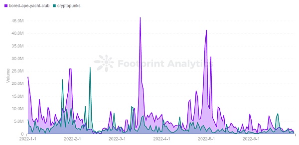 Footprint Analytics - Bored Ape Yacht Club vs Cryptopunks Volume