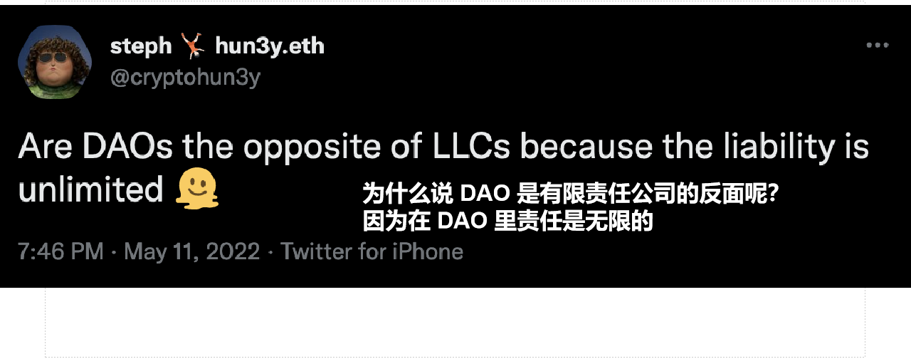今天,DAO 仍在试图规避法律。但这最终意味着,DAO 中的所有贡献者都要为 DAO 的行为负责,就像在普通合伙企业中一样。根据 Investopedia 的说法,"在普通合伙企业中,合伙人同意承担无限责任,这意味着责任没有上限,可以通过扣押所有者的资产来支付。”