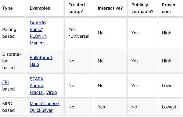 请参阅下表,了解不同证明系统的高级比较。当我们沿着表格往下看时,证明复杂度和安全性假设变得越来越好,而证明大小变得越来越差。虽然基于mpc的ZK证明系统提供了最好的证明复杂性,并且具备无需信任的设置,但证明是交互式的并且仅适用于特定的验证者(证明者与之交互的那个),所以当身份断言必须对链下的特定一方做出判断时,这可能就不是问题。(ZK证明系统的其他一些特征,如后量子安全性,在表中没有体现。)