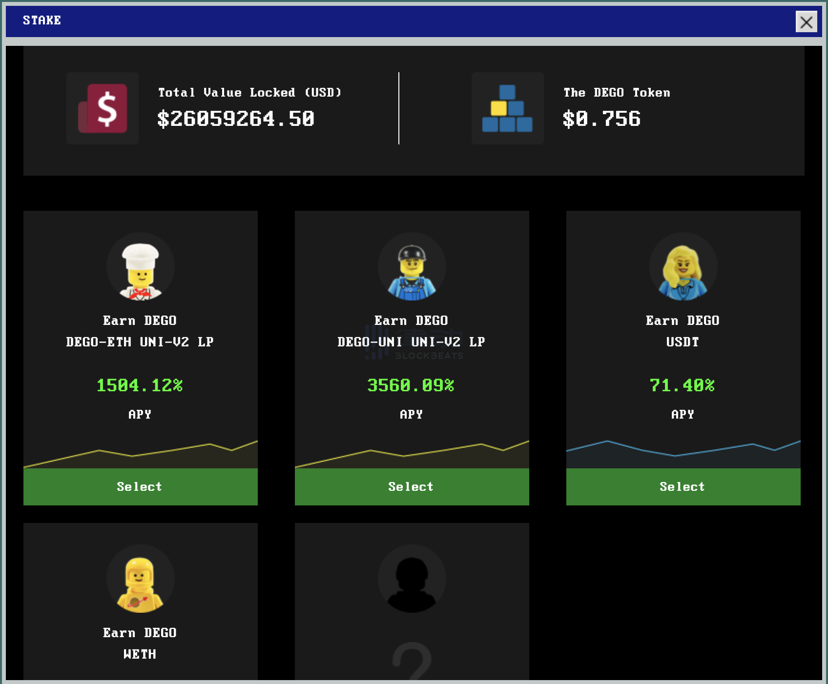 受到乐高(LEGO)积木的启发,DEGO 尝试将 DeFi 世界中的积木拼凑起来。往往一个积木可能平平无奇并不显眼,然而当所有积木组合在一起就会有无限的想象空间。