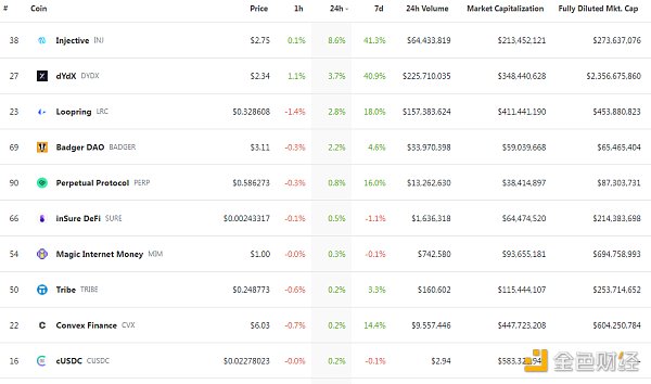过去24小时去中心化交易所的交易量 数据来源:coingecko