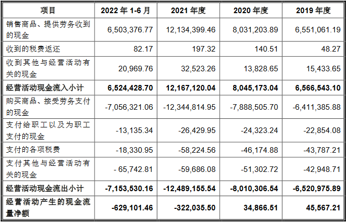 报告期内,中信金属经营活动产生的现金流量净额分别为45,567.21万元、34,866.51万元、-322,035.50万元和-629,101.46万元,净现比分别为0.64、0.31、-1.77和-3.99。