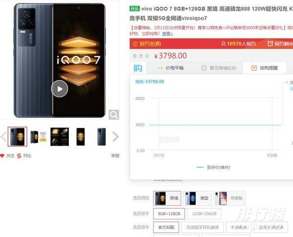 目前iqoo7手机的售价很平稳。起售价是3798元