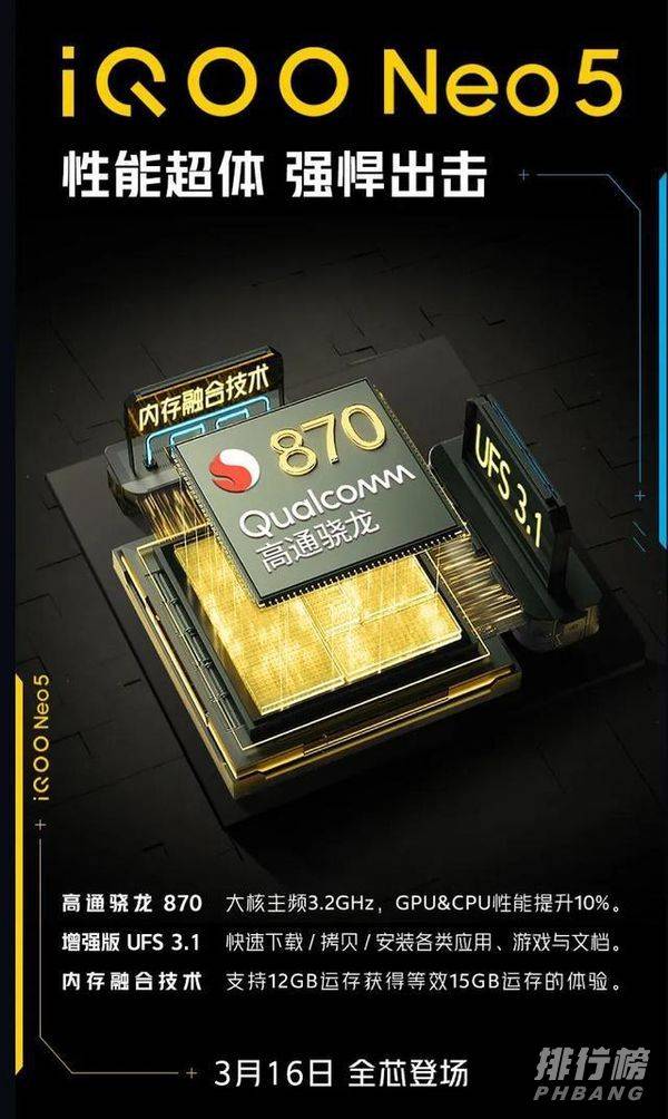 iQOO Neo5这款智能手机,将搭载骁龙870处理器+独显补帧芯片+LPDDR4X+UFS 3.1组合,其中独显补帧芯片是这次的主打亮点之一,有着非常大的看点。
