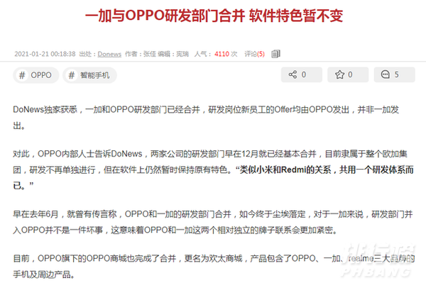 在1月份的时候,也有新闻说到一加与OPPO的研发部门合并了,软件特色暂时不变(注意,是软件哦,不是系统),共用一套研发体系,商城也已经搬到欢太商城了(OPPO商城更名为欢太商场,入驻的品牌有OPPO、一加、真我),从一加官网商城点击购买会直接跳转到欢太商城。
