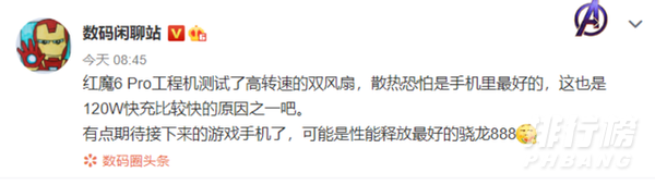 据数码博主爆料,红魔也在测试高转速的双风扇,后期又修改了该条微博,可能是设计还不成熟,腾讯红魔游戏手机6上并没有搭载。