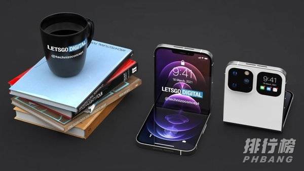 图中所示,iPhone Flip采用了与三星Galaxy Z Flip极为相似的设计方案,翻盖的“化妆盒”设计也非常便于携带带来更小的体积,这也是目前市面上非常受欢迎的折叠屏方案。